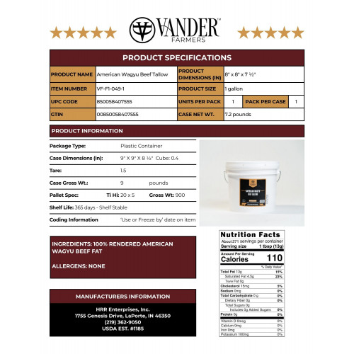 American Wagyu Beef Tallow 1 gallon | 850058407555 | Sturgis Dairy LLC dba Vander Farmers | ||||