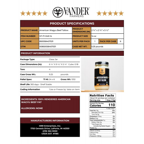 American Wagyu Beef Tallow 14 oz | 850058407531 | Sturgis Dairy LLC dba Vander Farmers | ||||