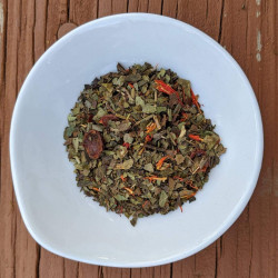 White Tea has a much lighter more mellow taste than Green Tea. Weve paired it with rose hips safflower raspberries and pomegranate for a subtly sweet slightly tart floral concoction. Wed liken drinking it to walking through a rose garden whilst digging into a fresh pomegranate.