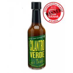 Cilantro Verde hot sauce is a unique blend of fresh cilantro smoky morita pepper tangy tamarind and mild poblano pepper. This sauce packs a punch of flavor with every drop making it the perfect addition to any dish in need of a flavor boost. The cilantro provides a fresh herby taste while the morita pepper adds a smoky depth. The tamarind brings a touch of tartness balancing the heat of the peppers and rounding out the flavor profile. Whether youre looking to add some excitement to your tacos spice up your eggs or just want a new dipping sauce Cilantro Verde is the perfect choice.