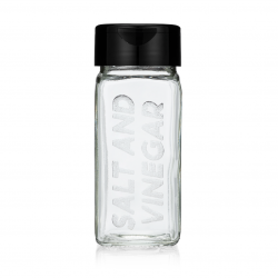 Etched Glass Spice Jar with Black Cap - SALT AND VINEGAR